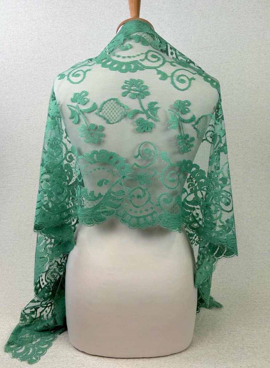 Vous porterez votre étole en Dentelle de Calais-Caudry® comme une large écharpe sur la tête, les épaules ou nouée négligemment autour du cou.