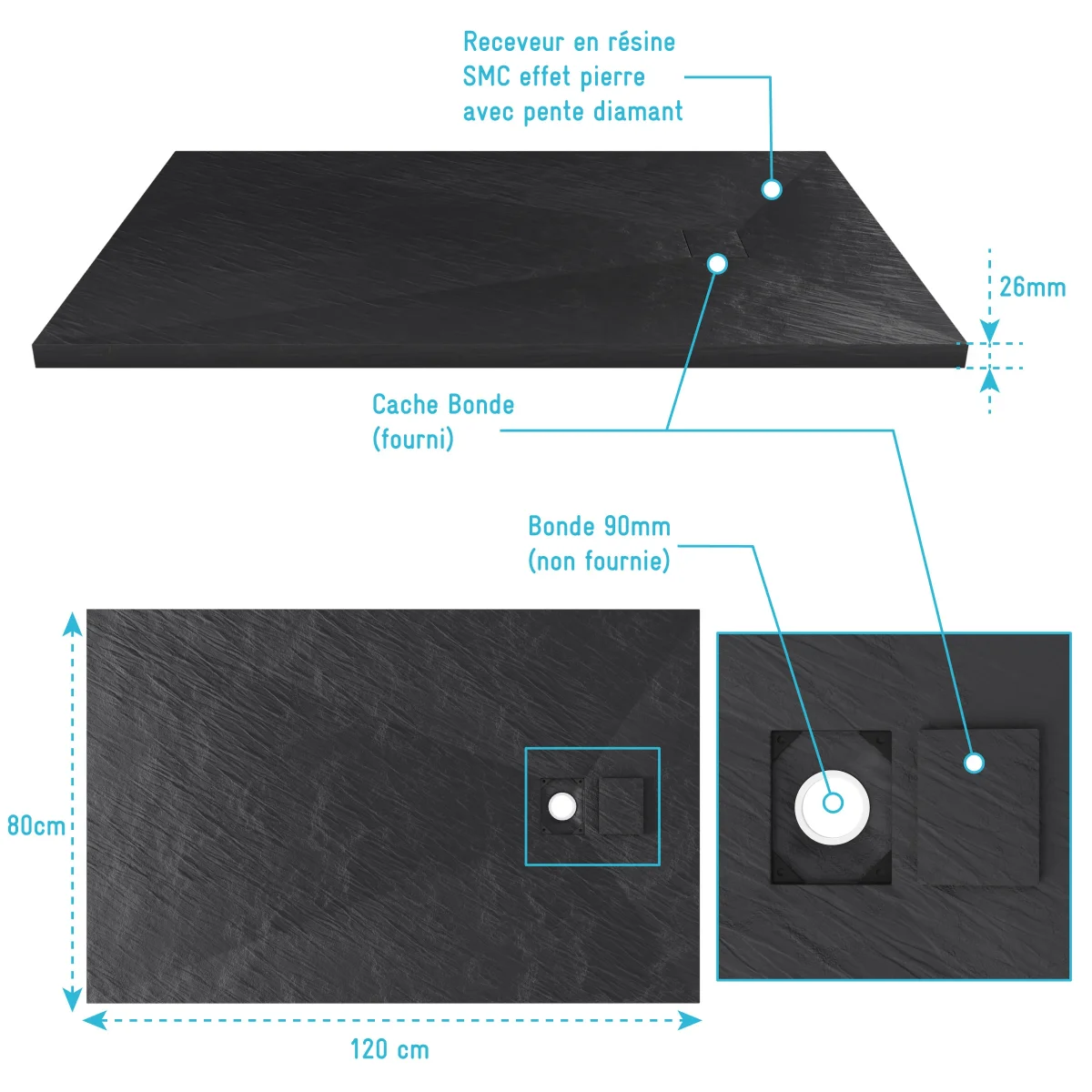 - Receveur en résine SMC effet pierre