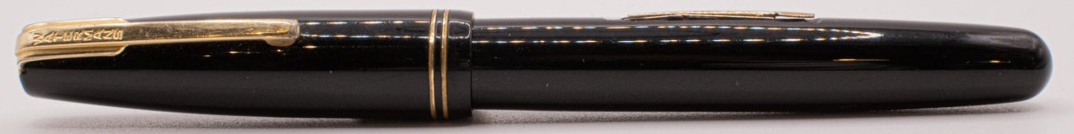 Un grand classique signé PELIKAN, c’est un modèle M150 produit dans les années 90’s et qui restera au catalogue en version Black. Il est équipé du système à piston de la marque, son corps en celluloid noir et ses attributs plaqués or. Il a une plume PELIKAN plaquée or (léger manque de dorure sur un côté de la plume) de taille moyenne et semi flexible. Un exemplaire à l’état neuf.